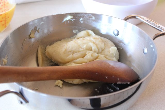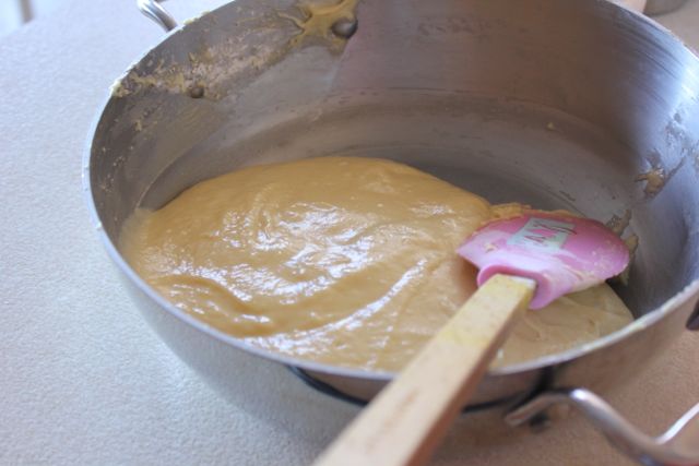 Once the eggs have been added and the pastry beaten, it is ready to be piped.