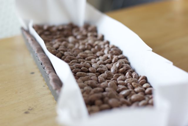 After 10 minutes, pull out the tart and line with parchment paper.