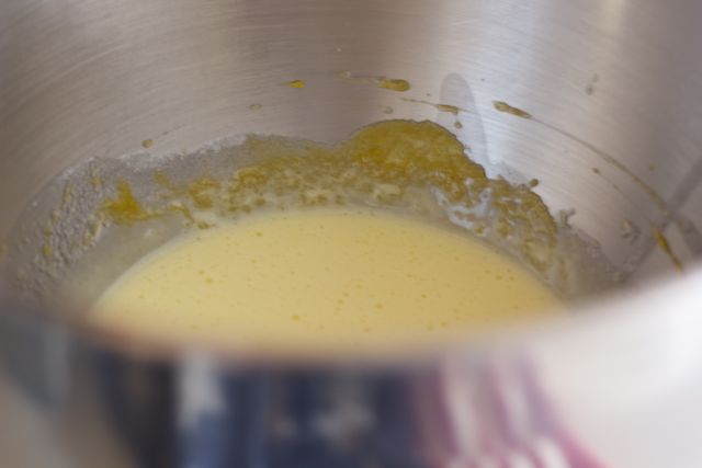 Beat the egg, egg yolk and ¼ cup of sugar together in a mixer until pale yellow and thick, about 4 minutes.