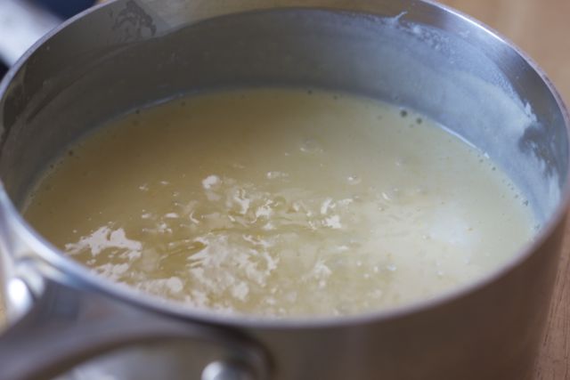 Meanwhile, heat up the milk with the 2 tablespoons of the remaining sugar.