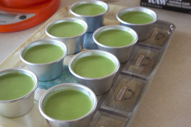 Pour into small ½ cup/118mL custard cups or even a large container.