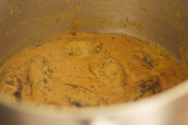 Mix all the pastes together to make an onion-spice masala.