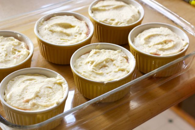 Fill the ramekins ⅔ of the way. Ensure room to rise.