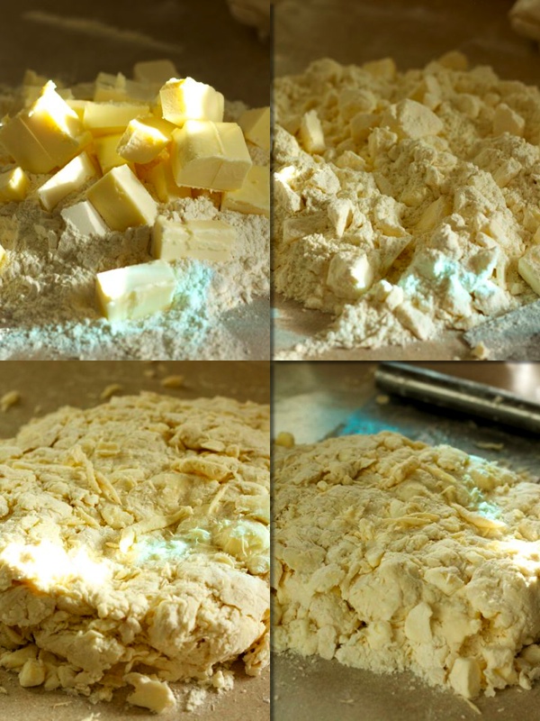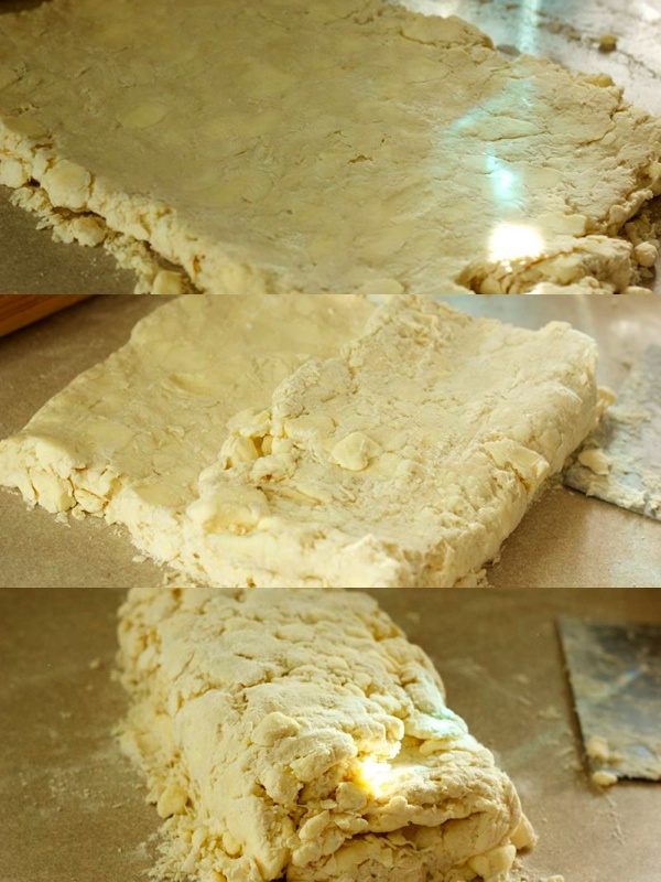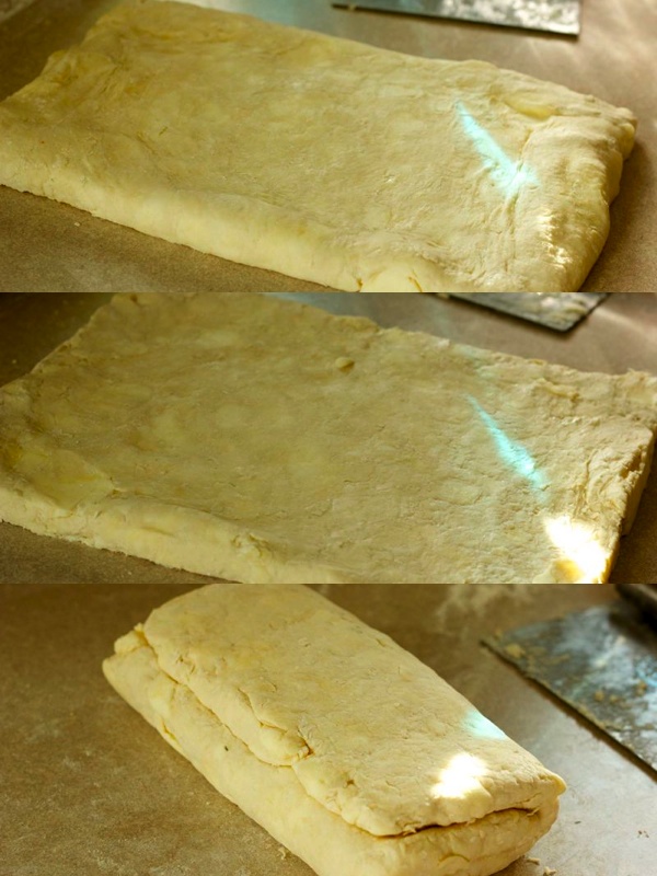 Try and coax the flour and butter globs into a letter fold: into thirds.