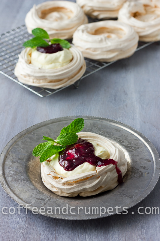 My meringues shells were a good size and if you prefer smaller ones, just pipe or dollop onto smaller circles. My husband was able to finish one off with no problem but my children and even I struggled to finish one. They were bigger than I anticipated. I thought that my white chocolate mousse was a bit sweet but the others didn't seem to have a problem. I would go easy on the fruit topping if you don't like yours too sweet. I haven't adjusted the recipe because my husband and children didn't find it sweet and so, maybe it's just me.