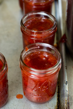 Line the jars on a sheet tray and place in the oven to dry and sterilise.