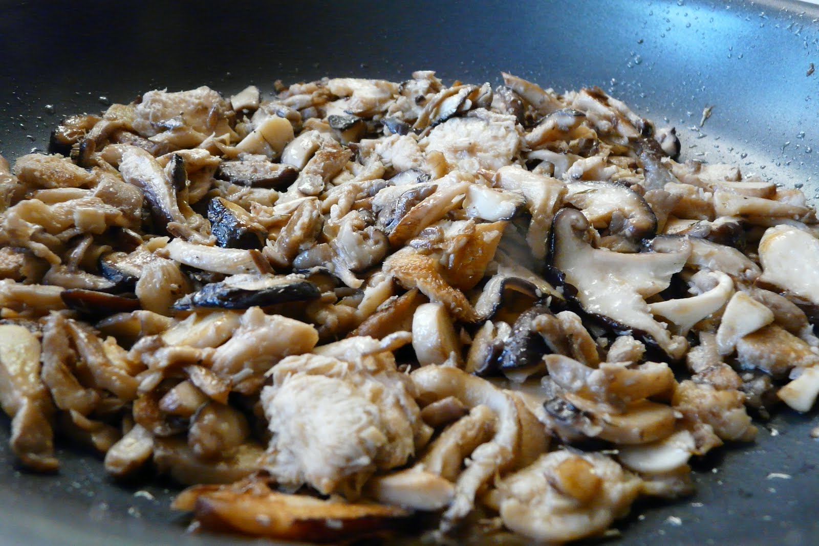 Now, onto the cooking part. There are no hard and fast rules for this sauté at all. If you can’t find or don’t have the exotic mushrooms, use any type you can find. All mushrooms are tasty. Mushrooms tend to shrink a lot after cooking, so what may look like a huge, heaping pile of mushrooms, will reduce to a plateful.