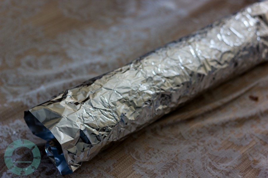 Once the cake is rolled, keep it covered and rolled in the foil.