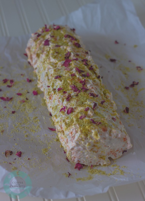 Dust with ground pistachios and dried roses if desired.