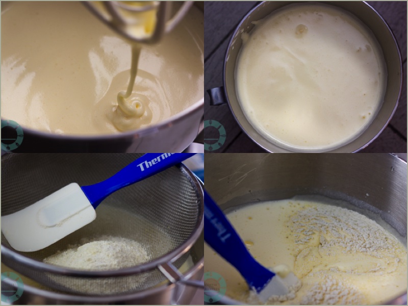 The consistency of the whipped eggs and sugar have to be like softly whipped cream.